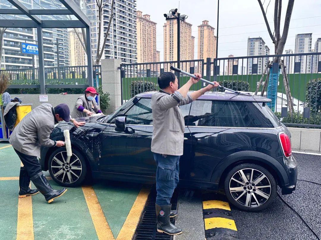 不少业主春节长假自驾返乡,一路尘土加上阴雨天气,车辆也已“风尘仆仆”。为解决业主洗难、洗车贵的难题。杭州展望轩开展了春节洗车便民服务活动,业主朋友们无需出户,在家门口就能享受便捷的洗车服务,融信用真诚的服务之心让业主的爱车变“靓”变“美”。